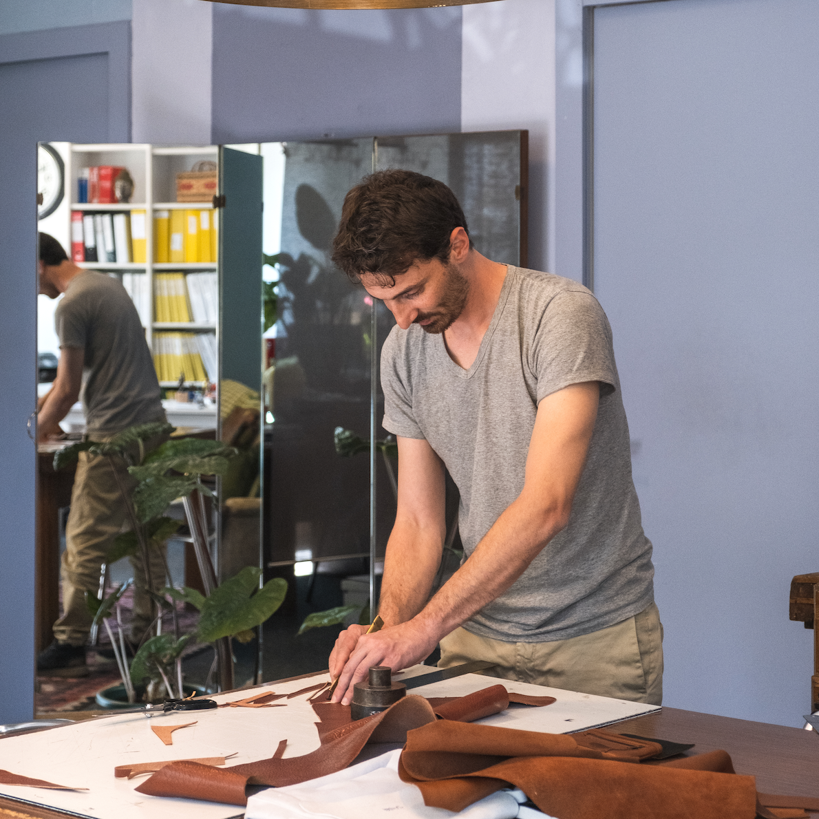 Claudio Spanò, artigiano e designer, creativo quanto disordinato, trae inspirazione per i disegni guardando le foglie che cadono dagli alberi o il riflesso sulle pozzanghere di quanto vi viene catturato e capovolto.